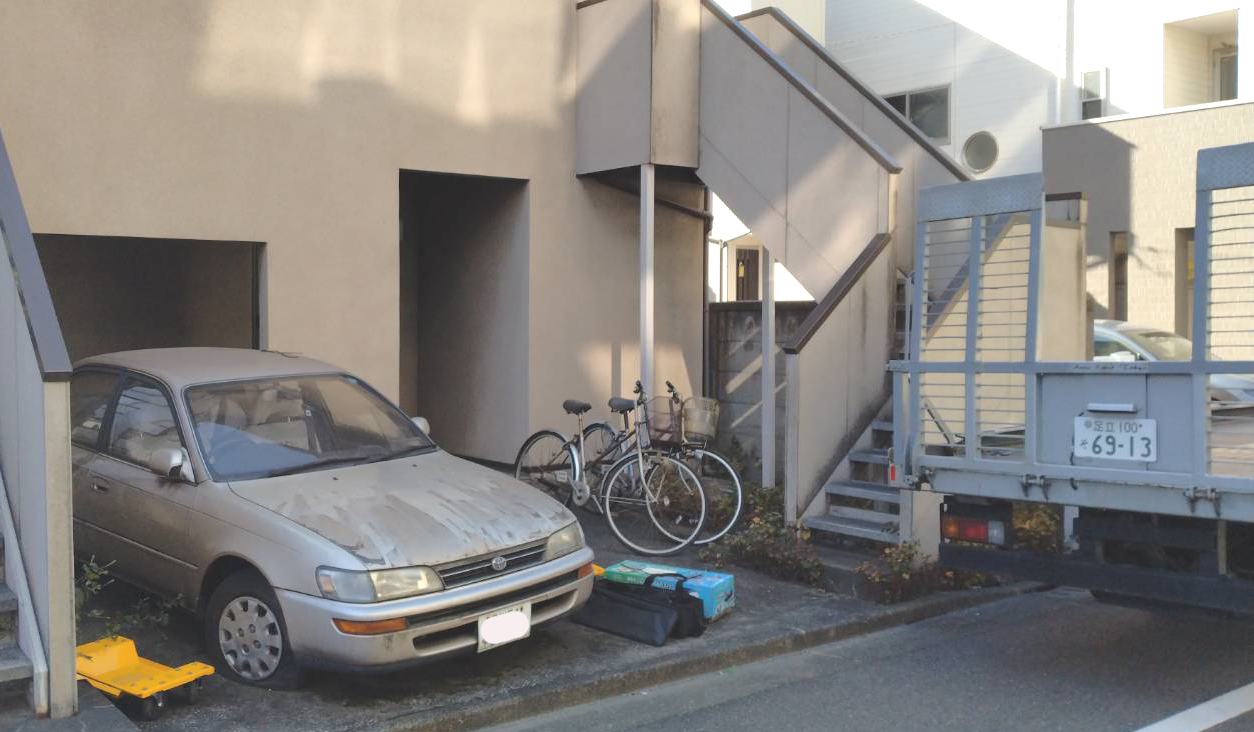 今回は自宅駐車場に車検が切れて20年以上動かさずに放置された自動車の引取り作業です。